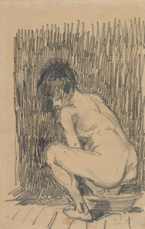 Nude Woman Squatting over a Basin
