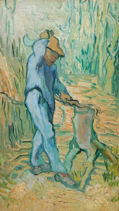 Within a short period in September 1889, Van Gogh produced paintings based on ten prints. They included this woodcutter. The prints were a series of small wood engravings, themselves based on ten paintings by Jean-François Millet (1814-1875).