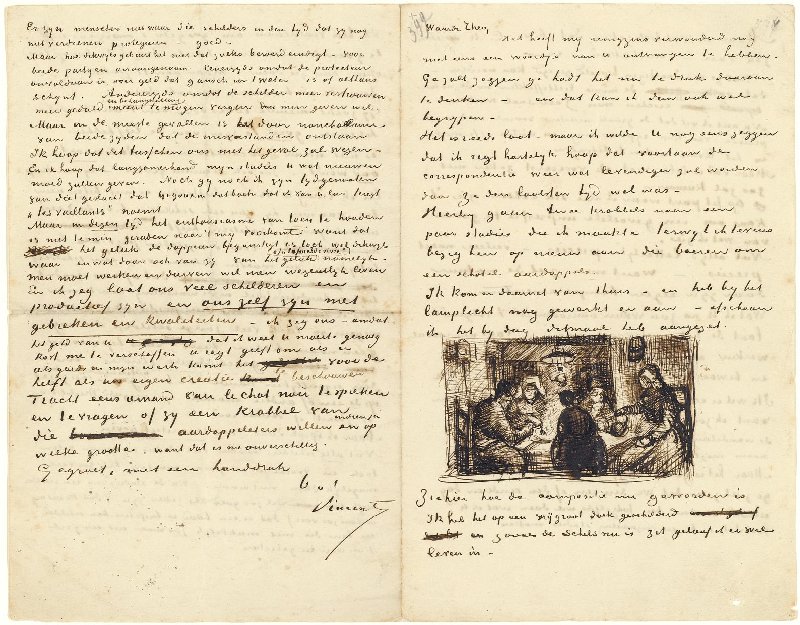 Brief van Vincent van Gogh aan Theo van Gogh met schets van De aardappeleters (recto)
