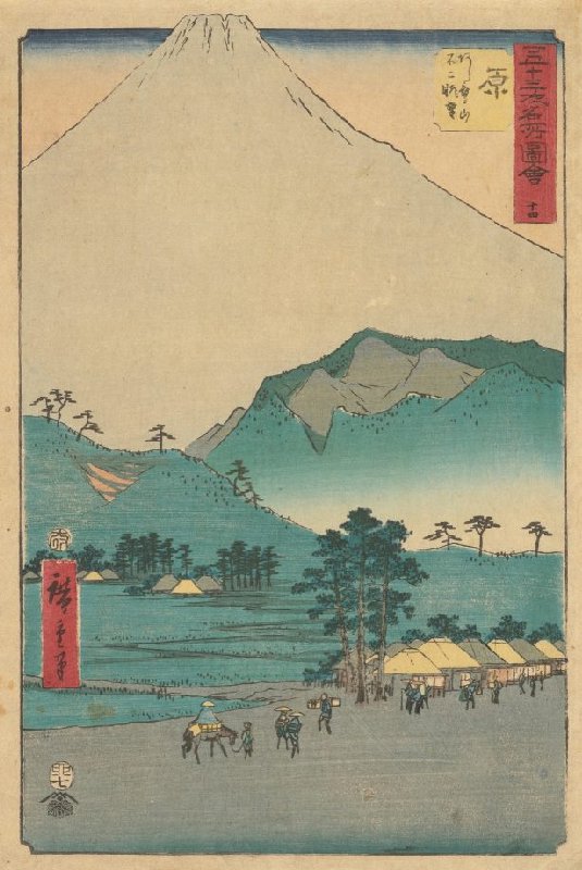 Hara: Gezicht op het Ashitakagebergte en de berg Fuji, nr. 14 uit de prentenserie Verzameling afbeeldingen van beroemde plaatsen bij de drieënvijftig stations [langs de Tōkaidō]