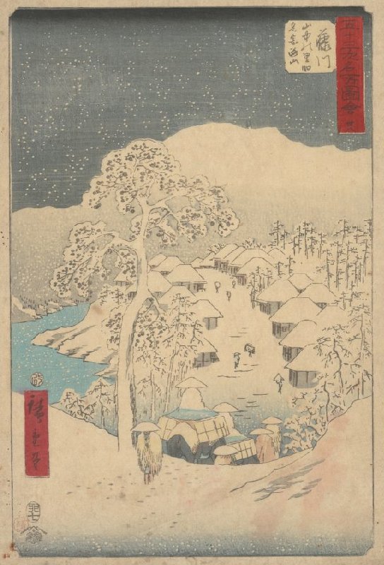Fujikawa: Het bergdorp en de berg van oudsher bekend als Miyajiyama, nr. 32 uit de prentenserie Verzameling afbeeldingen van beroemde plaatsen bij de drieënvijftig stations [langs de Tōkaidō]