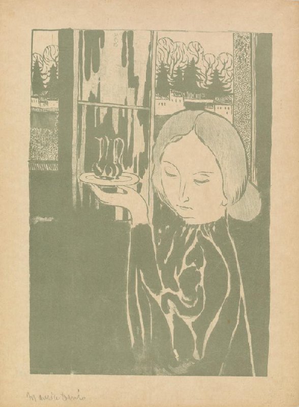 lithografie in olijfgroen op velijnpapier, 38 cm x 28.2 cm