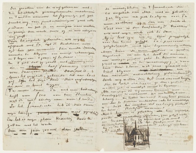 Letter from Vincent van Gogh to Theo van Gogh with sketch of The Reformed Church in Nuenen (verso)