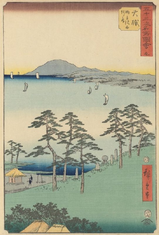 Ōiso: The Hermitage of Saigyō near the 'Rising-Snipe' Marsh, no. 9 from the series Collection of Illustrations of Famous Places near the Fifty-Three Stations [Along the Tōkaidō]