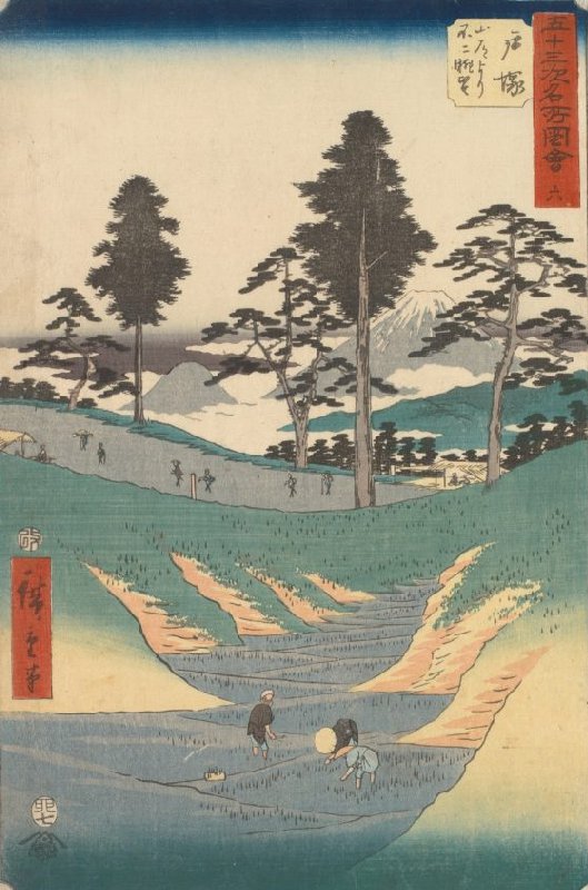 Totsuka: View of Mount Fuji from the Mountain Road, no. 6 from the series Collection of Illustrations of Famous Places near the Fifty-Three Stations [Along the Tōkaidō]