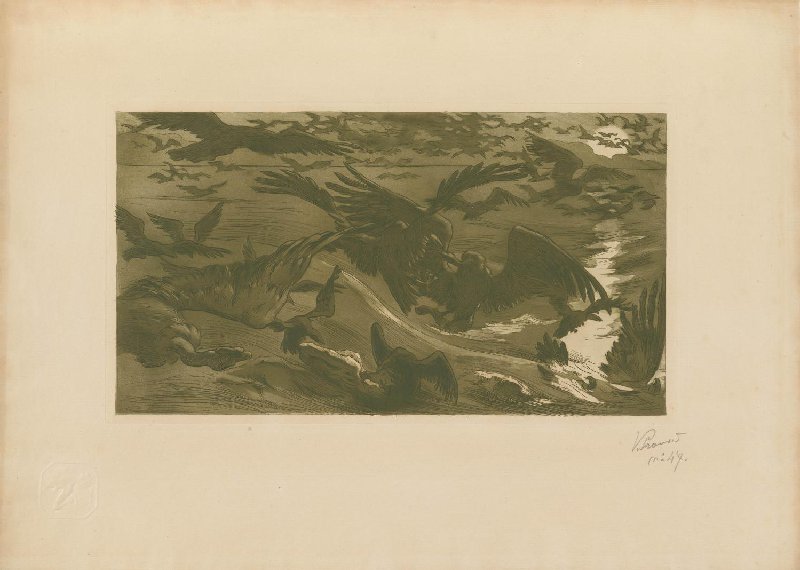 etching and aquatint in olive green on laid paper, 43.5 cm x 60.5 cm