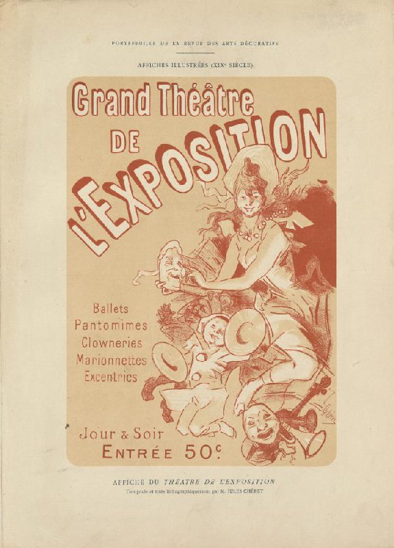 - AFFICHE DU THÉATRE DE L'EXPOSITION Composée et tirée lithographiquement par M. JULES CHÉRET