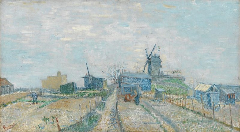In Paris, Van Gogh frequently painted the picturesque windmills on the hill of Montmartre. In his day, Montmartre was still a partly rural area with allotment gardens and farms.