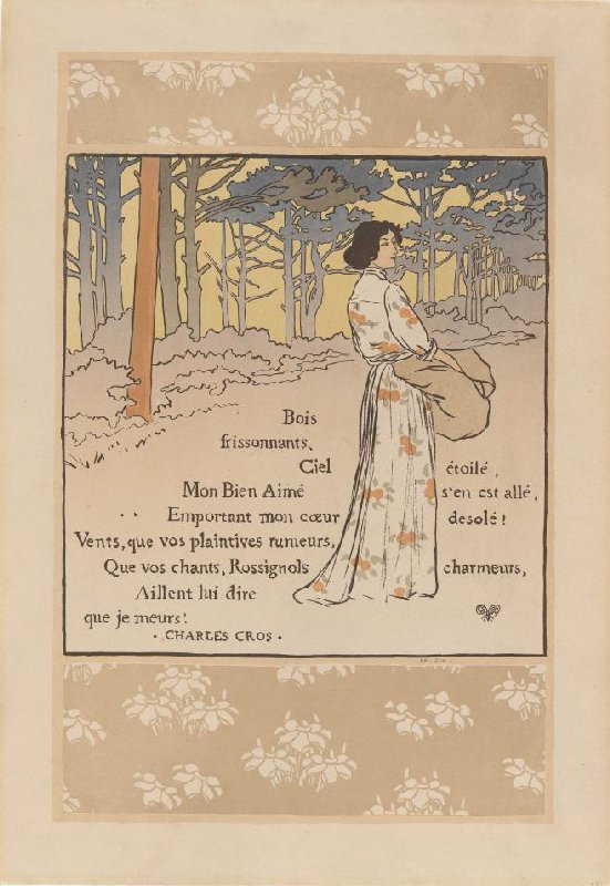 - Bois frissonnants, Ciel étoilé, Mon Bien Aimé s'en est allé, . . Emportant mon coeur desolé! Vents, que vos plaintives rumeurs, Que vos chants, Rossignols charmeurs, Aillent lui dire que je meurs! * CHARLES CROS * by Auriol, George