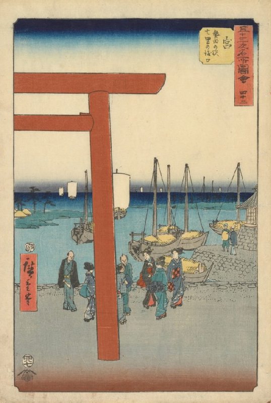 Miya: Het station Atsuta, de Shichiri veerboot aanlegplaats, nr. 42 uit de prentenserie Verzameling afbeeldingen van beroemde plaatsen bij de drieënvijftig stations [langs de Tōkaidō]
